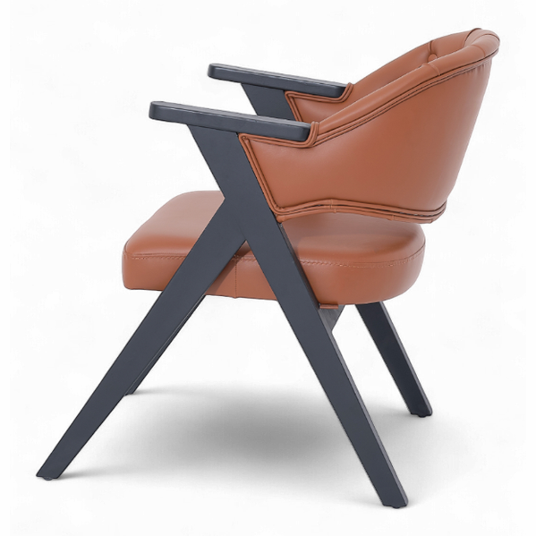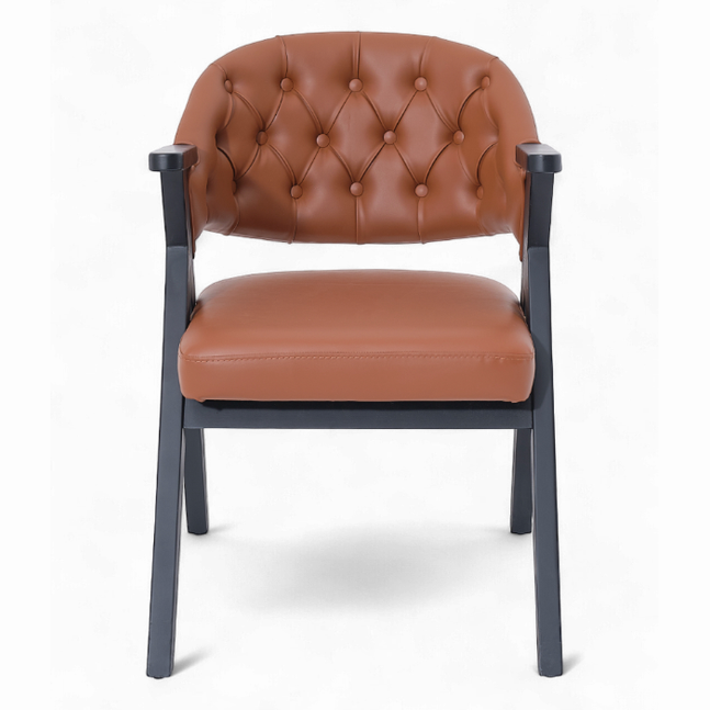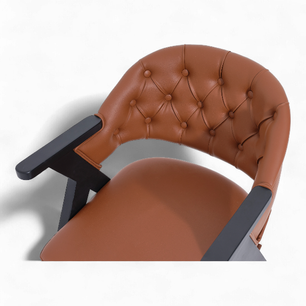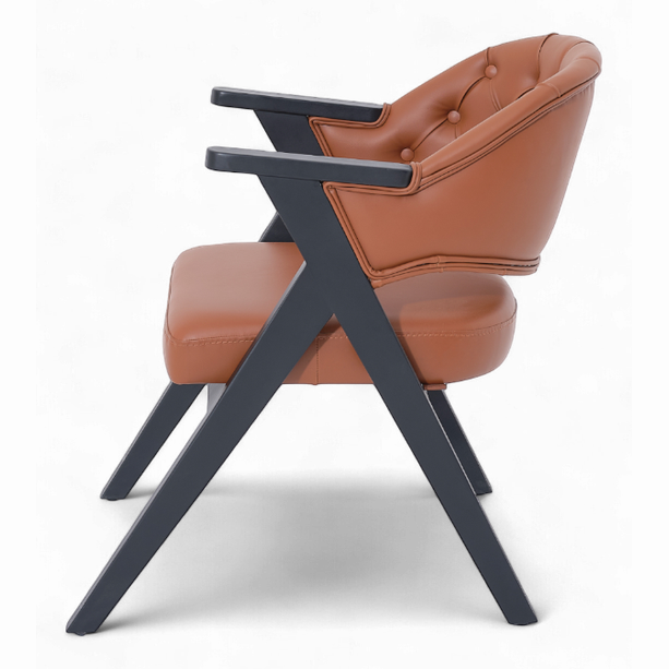 Son dossier capitonné au style classique revisité et son assise généreusement rembourrée offrent un excellent maintien et un confort durable. Son revêtement en simili cuir de haute qualité, associé à une structure en bois foncé, apporte une touche chic et chaleureuse à tous les espaces professionnels.