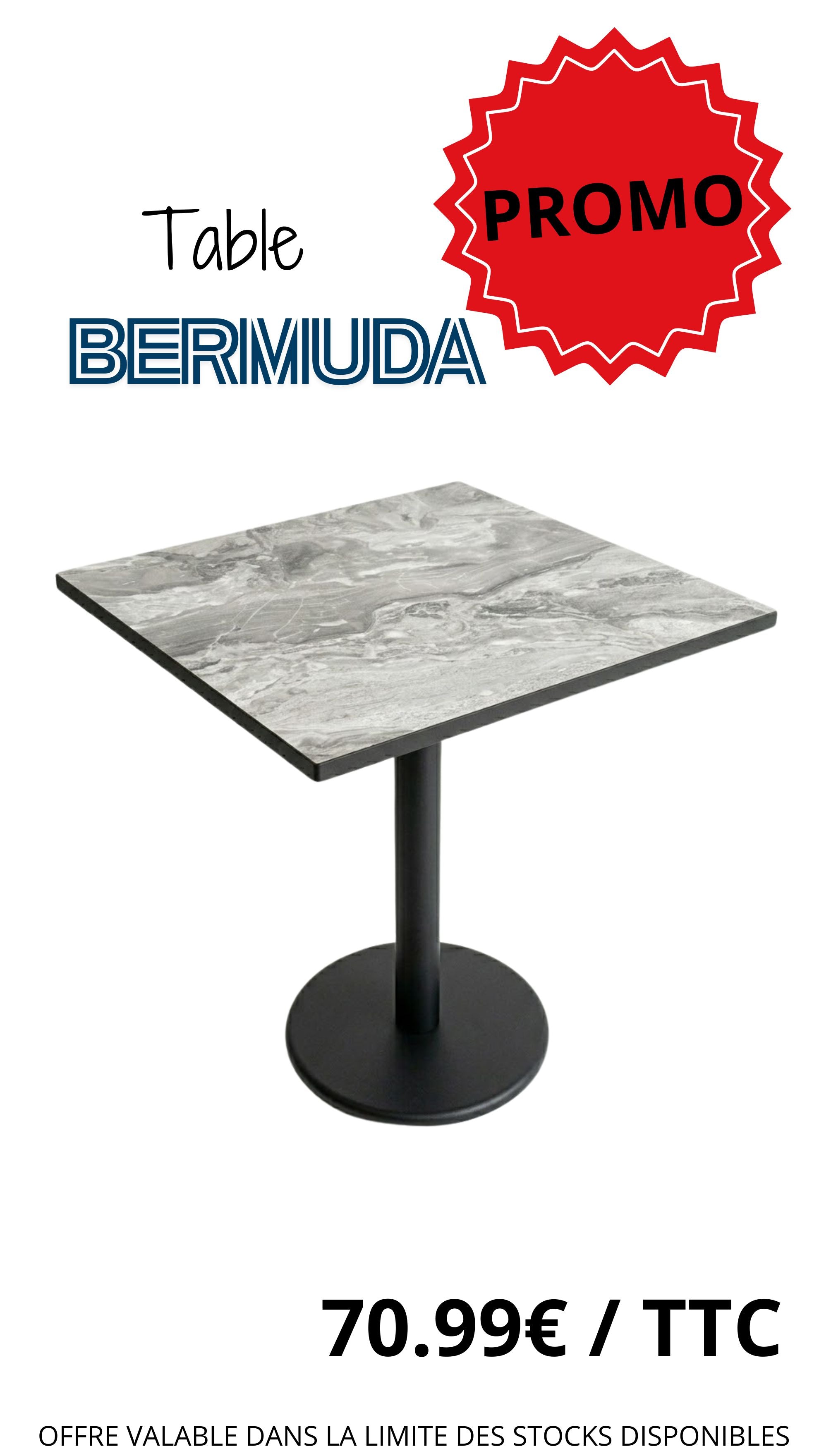 Table professionnelle pour la restauration : Pied de table et plateau en 2 décors tendance