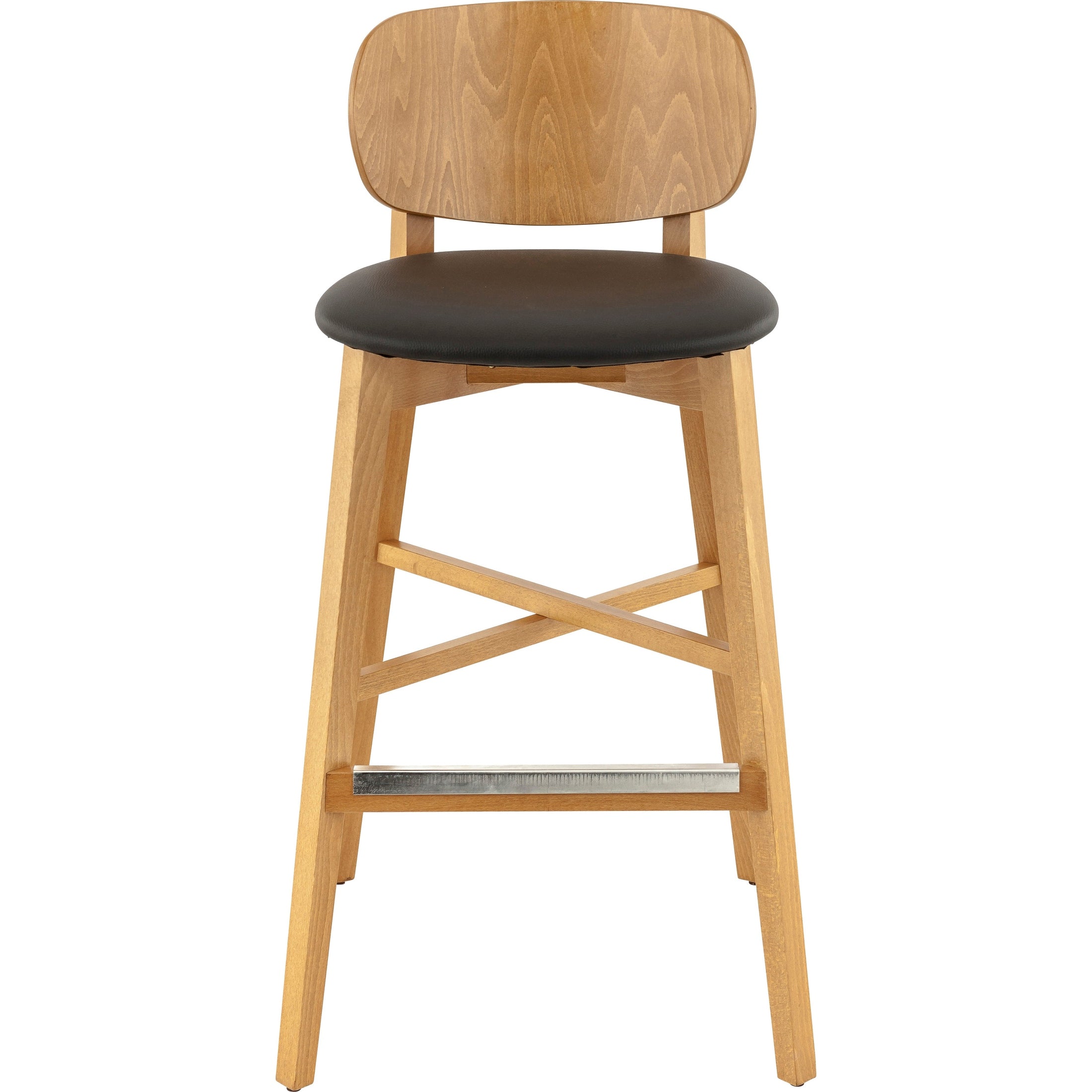L'armature de ce tabouret de restaurant est de coloris chêne miel et l'assise est ornée de similicuir PU coloris Noir. Le similicuir PU (polyuréthane) est utilisé sur un grand nombre de chaises et tabourets car il a la particularité d'être anti-déchirure.